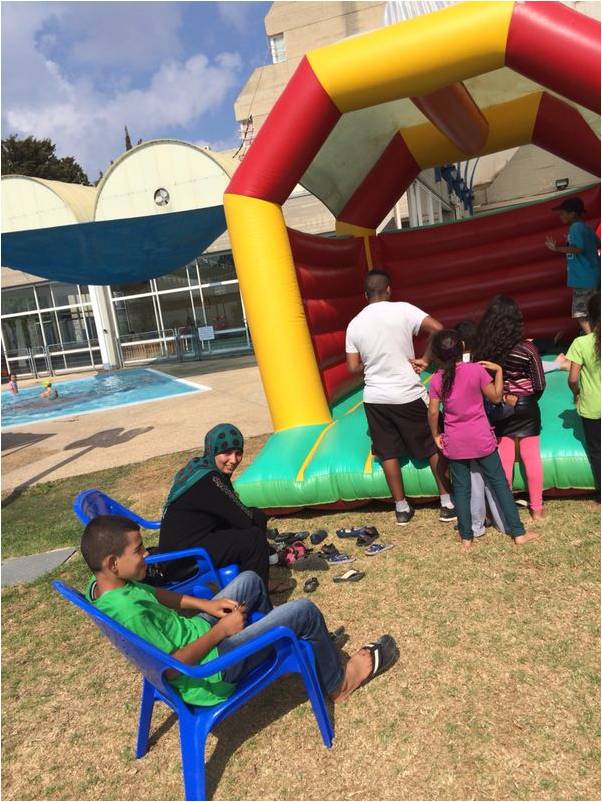 As missiles continue to rain down on southern Israel, Leo Baeck, in a joint initiative with the Reform Movement of Israel, warmly welcomes busloads of children from Ashdod, Ashkelon and the Bedouin village of Tel-Sheva near Beer-Sheva on a daily basis. Now, 3 weeks into Operation Protective Edge, Leo Baeck has hosted over 300 children. They delight in carefree, outdoor play in the swimming pool and sports facilities of the Leo Baeck Community and Sports Center, partake in arts-and-crafts activities, watch movies, are entertained by the likes of magicians and bouncy castles, and enjoy meals provided by Leo Baeck. Senior Leo Baeck students volunteer time from their summer vacation to be counselors and offer friendship, support and hugs during this very difficult time.